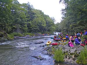 唯一、ファルトボートで参加のIさんだけが、仲間になってくれそうだ。ただ、そのIさんも前回の空知川例会では一度も沈をしないで激流を下りきっているので、自信を持ってしまって「私もチャレンジャーコースに行きます」なんて言われたら大変である。
