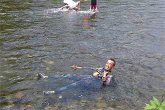 最後の難所である蛇篭の落ち込みは、左側から進入すると素直な流れになっていてあっさりと下れてしまった。