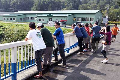 カヌークラブ8月例会の2日目はシーソラプチ川である。 集合場所の落合までやってきて、直ぐに渡月橋の上から川の様子を眺める。 参加者は20名、18艇。