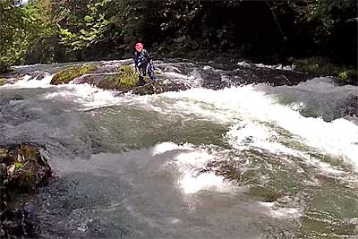 次がいよいよトラウマの瀬である。 その途中で早々とガンちゃんが流されてきたので、慌ててカメラを向ける。