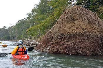 | 巨大な倒木の根にビックリ | おびただしい数の流木にビックリ |