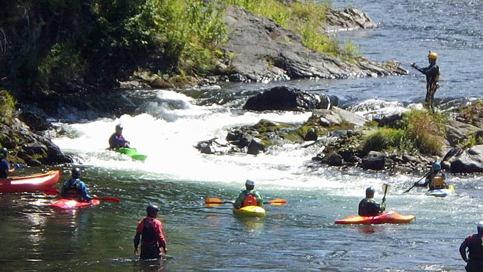 2年前にここを下った時は、下見する余裕もないままに瀬に突入し、ふざけて連結状態で下ってきたカヌーに後ろからぶつけられて巻き添え沈をさせられていた。