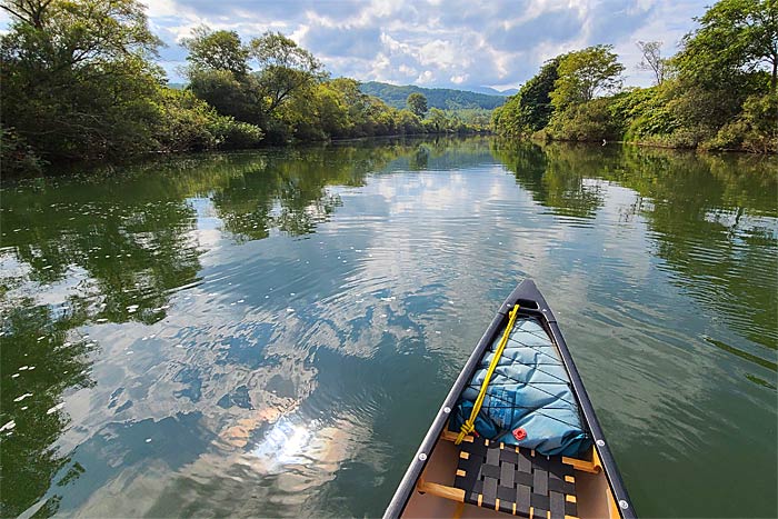 ようやく静水区間を抜けて、久しぶりに前方に流れのある場所が見えてきた。