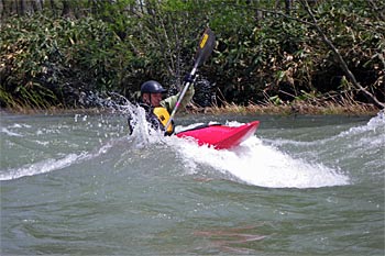 カヌークラブの例会でここを下ったのは5月の中旬、桜を眺めながらののんびりツーリングのはずが、雪解け水による増水で沈事件も起きる様な川下りとなってしまった。