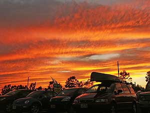でも、花より団子、夕日よりもビール、大急ぎでキャンプ場まで引き返す。