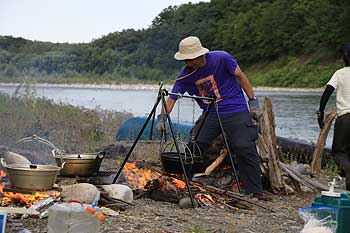 「川のツーリングキャンプにダッチオーブン?」