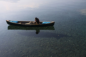 かみさんの乗ったカヌーが岸に近づいていくると、その影がくっきりと湖底に映っていた。