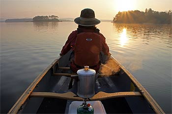 焚き火の前でモーニングコーヒーを味わい、昨夜の残りの鳥粥を朝食にし、撤収を始める。