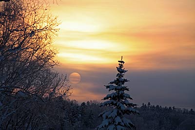 暗くなってから外に出てみると、ログキャビンの上には冬の星座オリオン座が輝いていた。