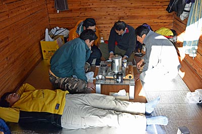 そこに大会スタッフをやっているクラブのYさん夫婦も加わって、それほど広くはないバンガローはギュウギュウ詰めである。