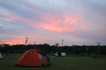 チャリダーの若者が早々にテントを片付け、旅立っていった。