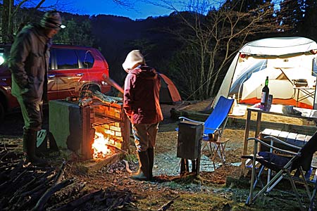 昨日までの雨で、場内に落ちている枝も湿っているだろうと思っていたが、日当たりの良い南向き斜面で結構乾いた枝を十分な量確保できて、今夜は盛大な焚火ができそうだと嬉しくなる。