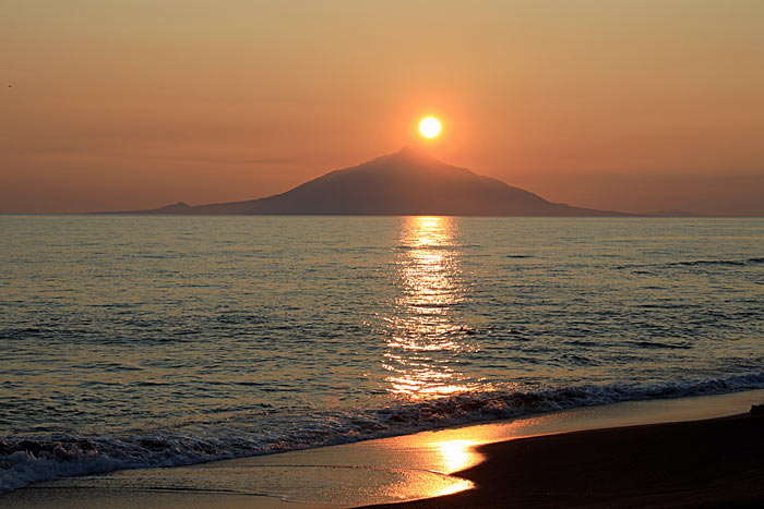 キャンプ地の海岸を決めるのに一番拘ったのは、そこから利尻富士に沈む夕日を見られることである。