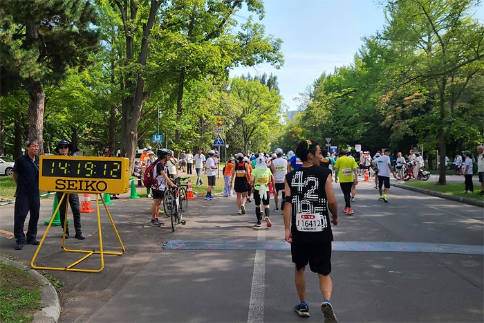 北海道マラソンとしては比較的走りやすい条件だったのかもしれないが、こんな気温の中を走るのは私には初めての経験である。