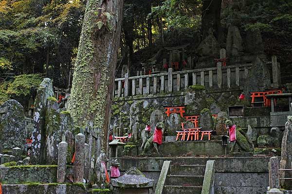 それぞれの峰ごとに違う神様を祭った社があり、その周りには無数のお塚が立ち並んでいる。