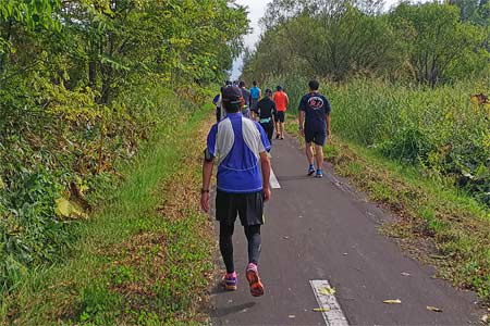 35キロを過ぎると、サイクリングロードを走るようになる。