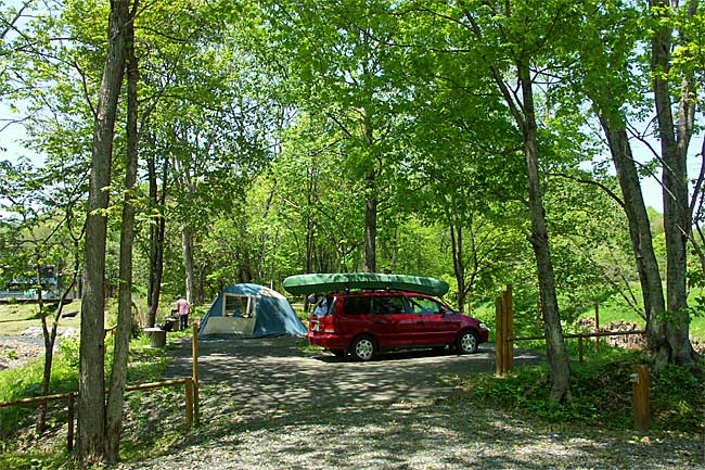 欠点は、車の通行音の他に、駐車場から橋を渡ってサイトに行くため荷物運びが大変なことだ。リヤカーは沢山用意してあるものの、混雑期には不足することも考えられる。