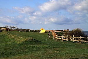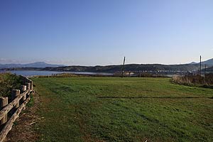 キャンプ場となっている場所は島の北端なので、駐車場からの距離は500mくらいありそうだ。