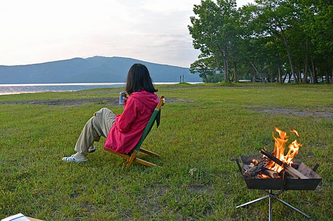 しかし、ここのキャンプ場にやって来るキャンパーの目的は、そんなロケーションよりも自分で湖畔の砂を掘って露天風呂を作ることである。