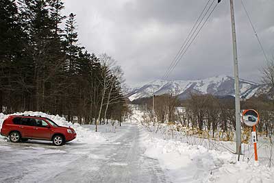 凍ってツルツルの道を慎重に車を走らせていくと、道路際に4、5台は停められそうなスペースが除雪されていて、旭川ナンバーの車が1台停まっていた。