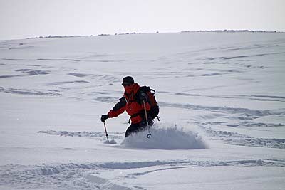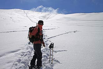そこで早くも、滑り降りてきた人とすれ違った。私達が登り始めたのが8時半なので、彼は日の出と共に登り始めたのだろうか。