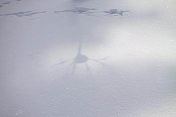 | 太陽の光が雪面に変化を付ける | チラチラと舞う雪も風景の一つだ |