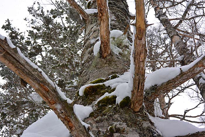 尾根の上までは上がらずに、林間をトラバースして前回滑った場所へと移動する。
