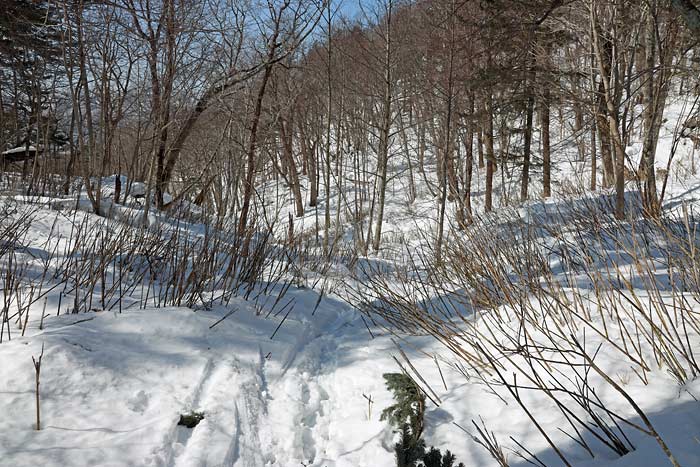 かろうじて残っているスキーのトレース