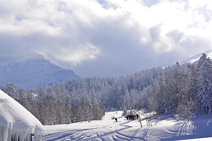 すっかりホワイトモンスターと化したアカエゾマツ林の間を登っていく。