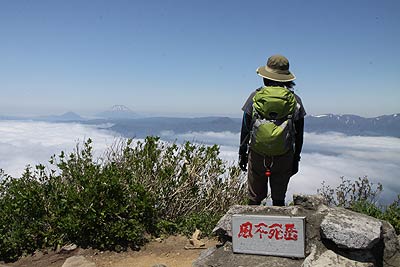 ヒュッテ前から登り始めて1時間40分、ついに風不死岳頂上に立つことができた。