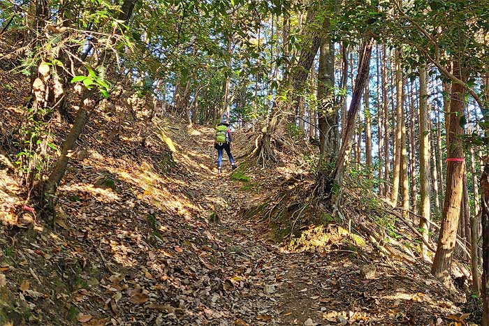 江文峠で一旦車道に出た後、再び山道に入り、暫くしてまた車道へと出る。