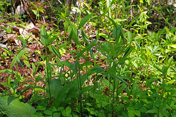アズキナの群落かなと思ったら、それらは全部ホウチャクソウのようだ。